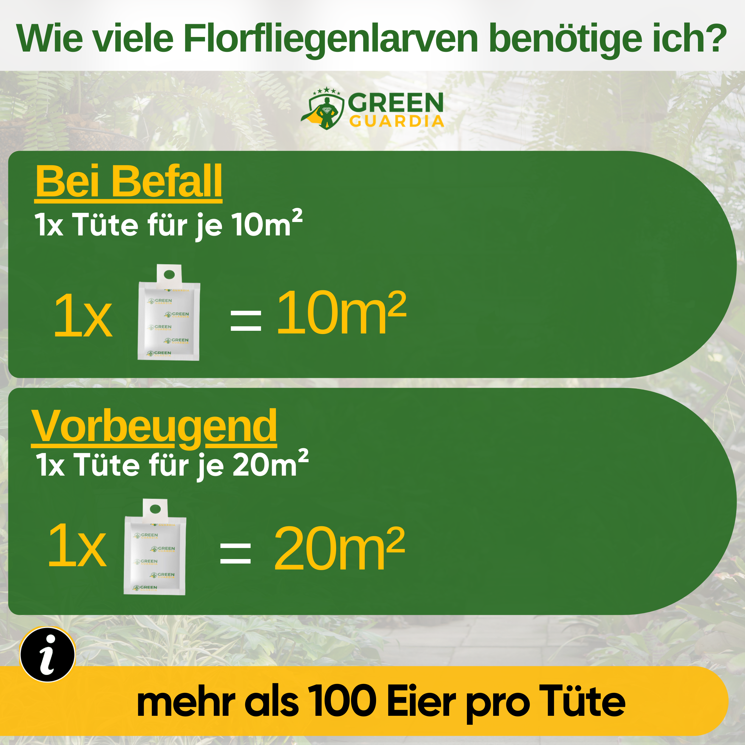 ch habe seit Jahren Probleme mit Blattläusen und Wollläusen, besonders an meinen Zimmerpflanzen. Mit den GREEN GUARDIA Power Florfliegenlarven habe ich endlich eine Lösung gefunden, die wirklich funktioniert! Die kleinen Larven machen sich sofort an die Arbeit und reduzieren die Schädlinge sichtbar. Nach etwa einer Woche war die Lage schon viel besser. Einfach, natürlich und sehr effektiv – genau das, was ich gesucht habe. Absolute Empfehlung! 🌸💚